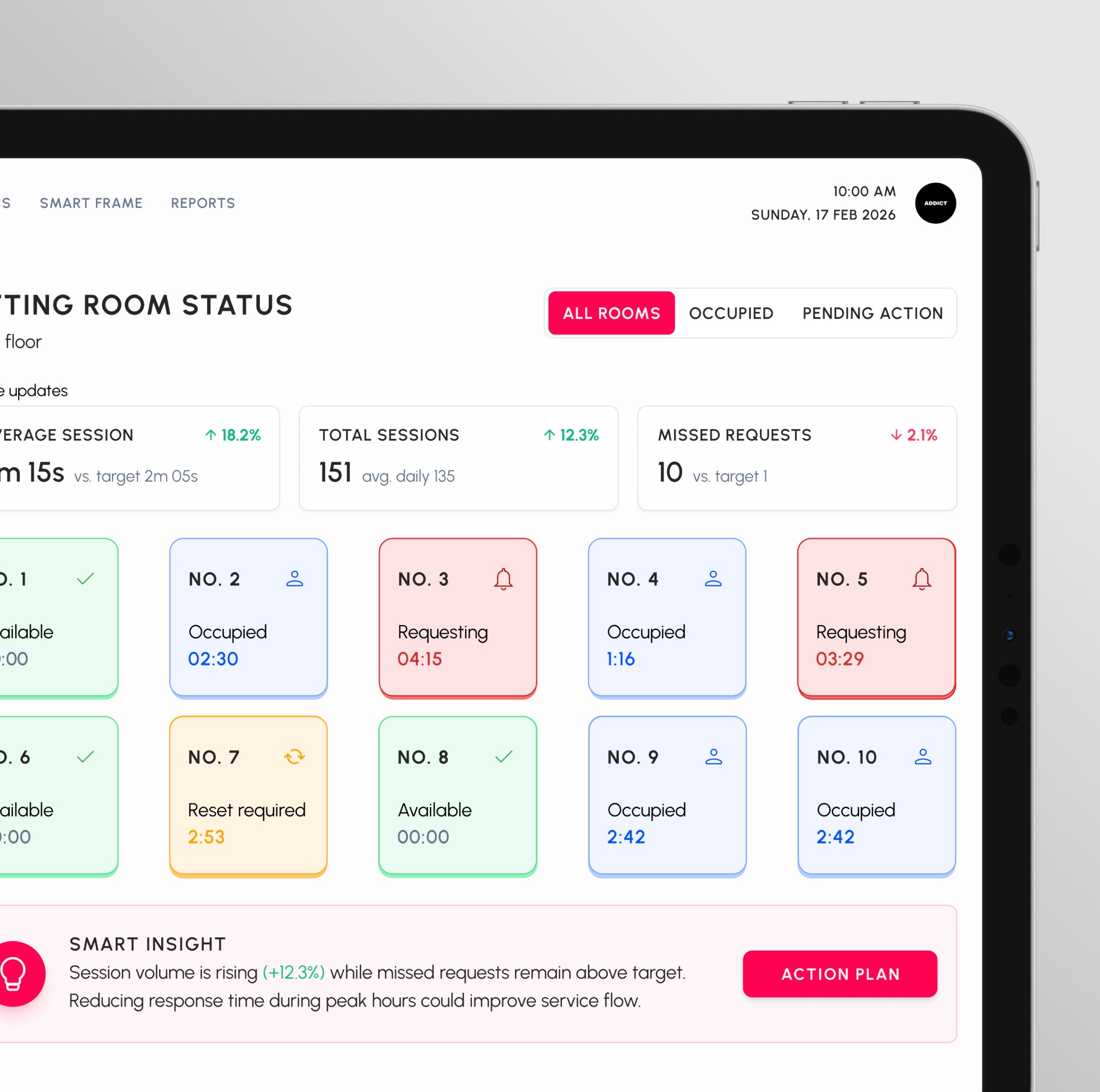 FITIQ turns the fitting room from a blind spot into a measurable retail asset. Powered by the SMART FRAME, it captures real-time fitting activity, service requests, and device data. By linking try-on behavior to response times and sales outcomes, FITIQ gives store managers clear, actionable insights to improve conversion and operational efficiency.