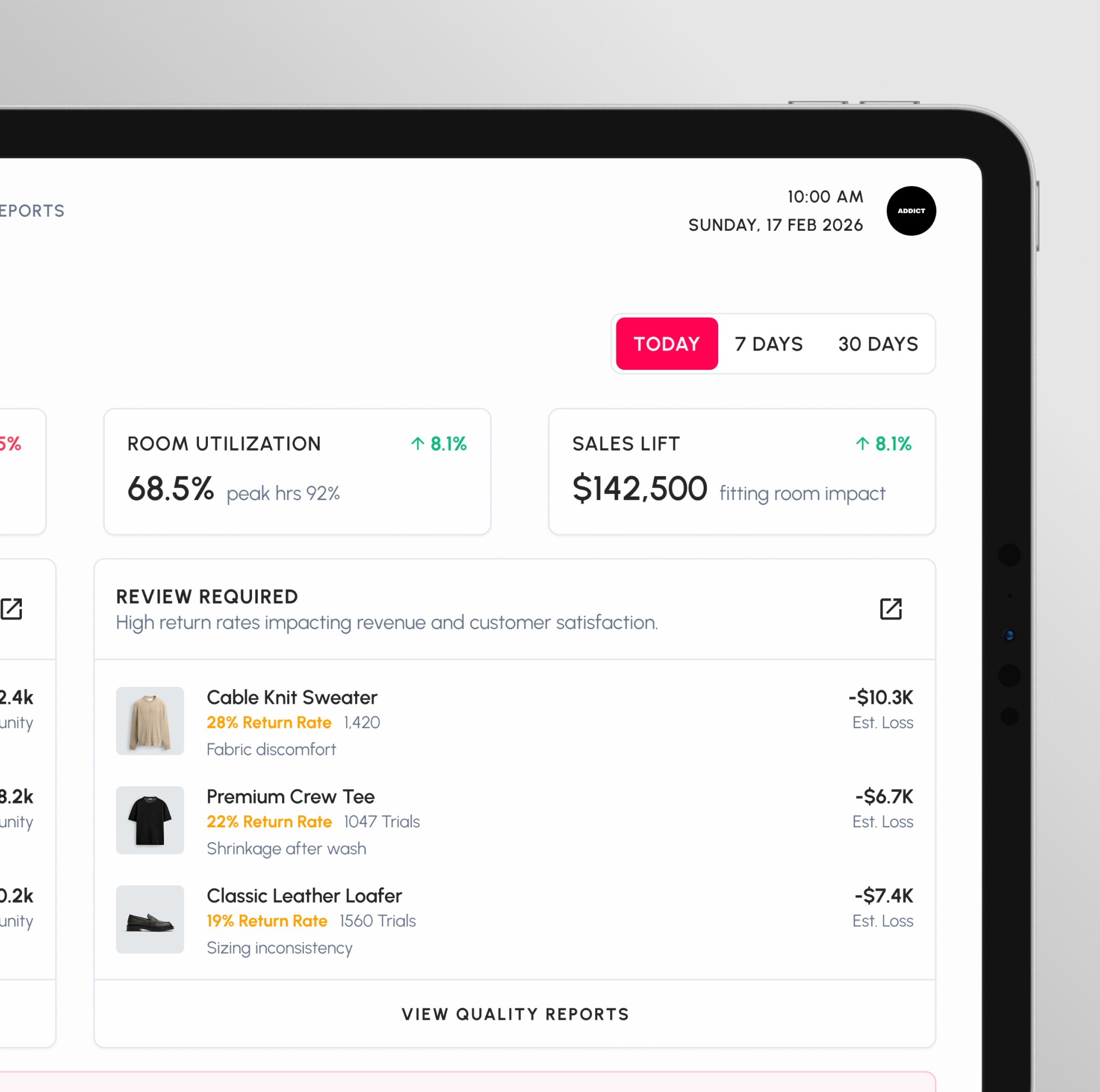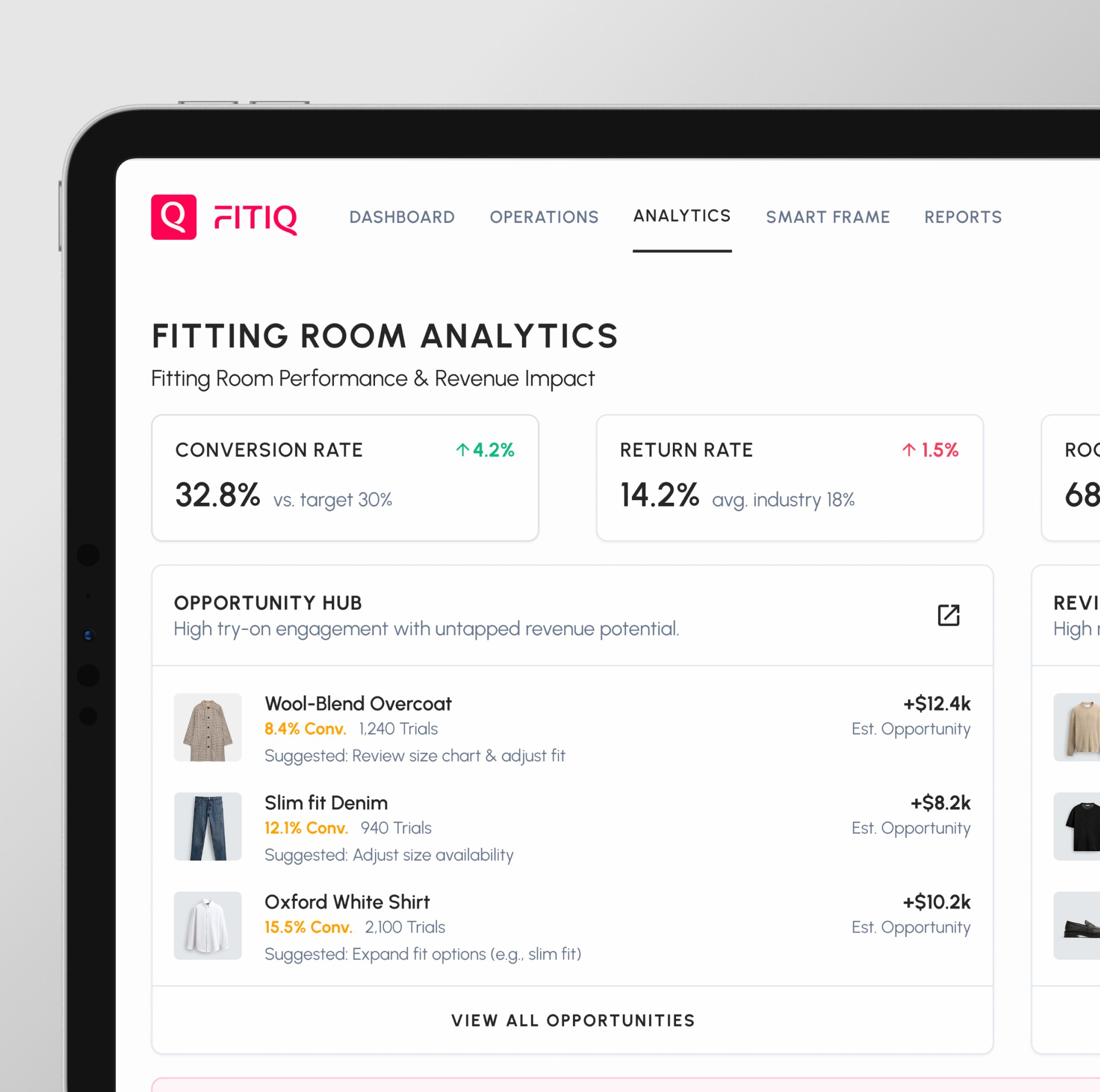 Transforms fitting room data into clear, actionable recommendations, enabling faster, data-driven decisions at the store level.
